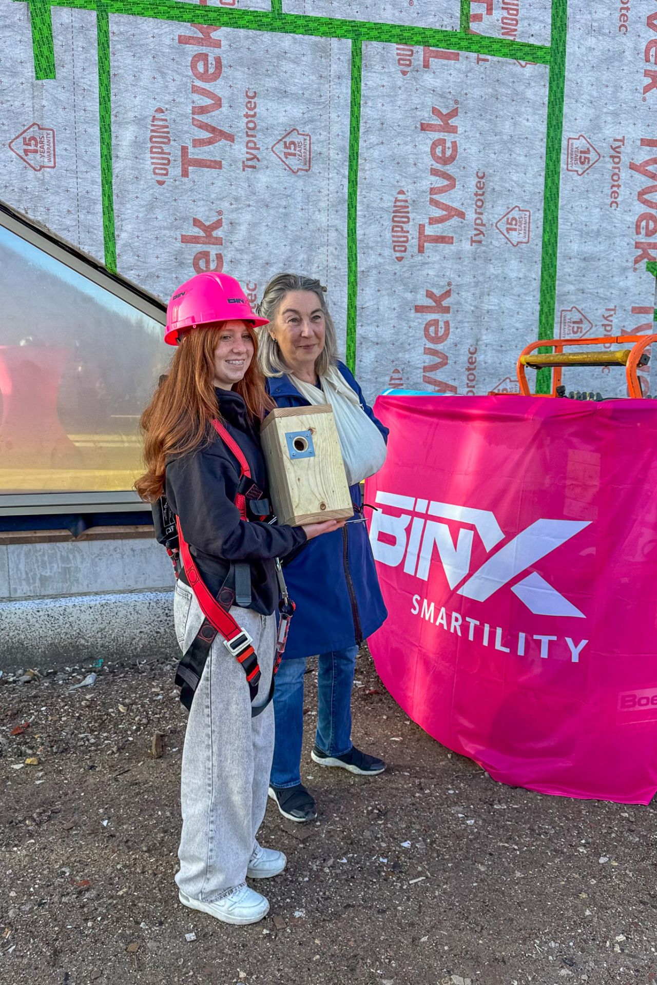 Wethouder Mariette Sedee nam daarna het woord en kondigde een bijzonder moment aan: het plaatsen van nestkasten in de gevel. Vogels gaan zich daardoor meer in de nieuwbouwwijk thuis voelen. De nestkasten zijn gemaakt door de scholieren van het Rietland College dat ernaast ligt. Samen met één van de scholieren plaatste de wethouder de allereerste kast.