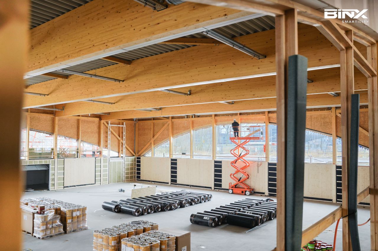 In Gemeente Haarlemmermeer werken we aan de laatste fase van nieuwbouwproject Sporthal Lincolnpark. Momenteel zijn we bezig met het bekleden van de gevel met duurzaam Basralocus-hout. Ook binnen wordt volop gewerkt aan de afbouw.